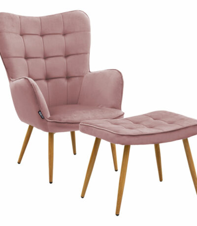 Maddison armchair with footrest-cushion velvet rotten apple-natural 68x72x98cm