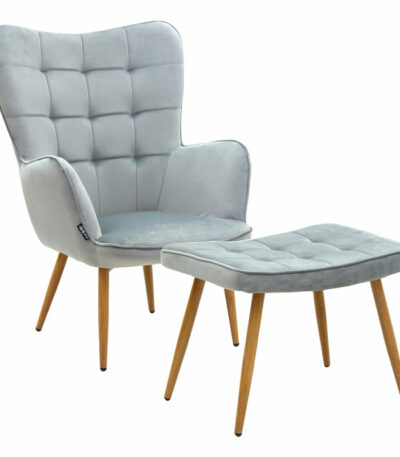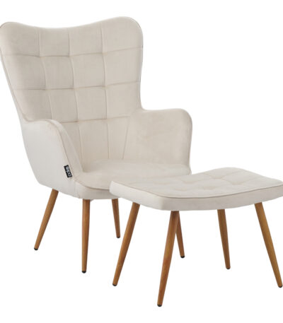 Maddison armchair with footrest-cushion cream velvet-natural leg 68x72x98cm