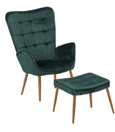 Maddison armchair with footrest-cushion dark green velvet-natural leg 68x72x98cm