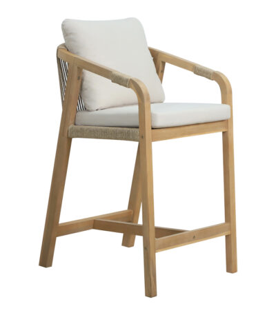 Bar stool Luciana solid acacia wood-beige fabric 68x55x97.5cm