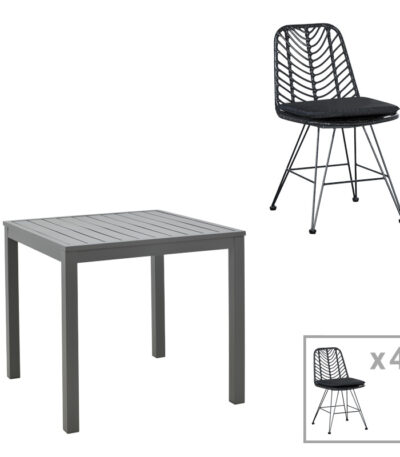 Kliton-Naoki dining table set of 5 anthracite aluminum and metal in black shade 80x80x74cm