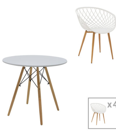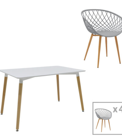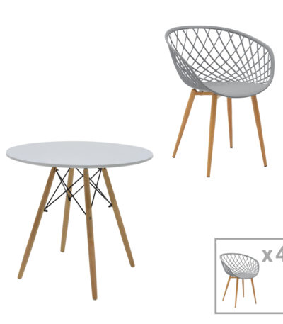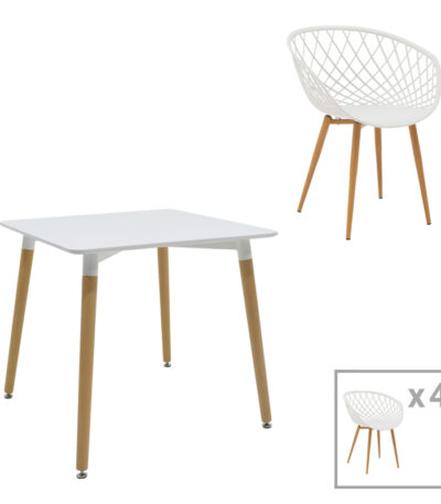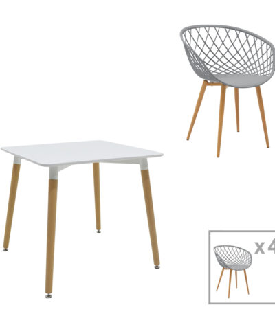 “Ezra-Natali dining table set of 5 pp-mdf in grey-white color with natural legs 80x80x76cm” has been added to your cart. View cart