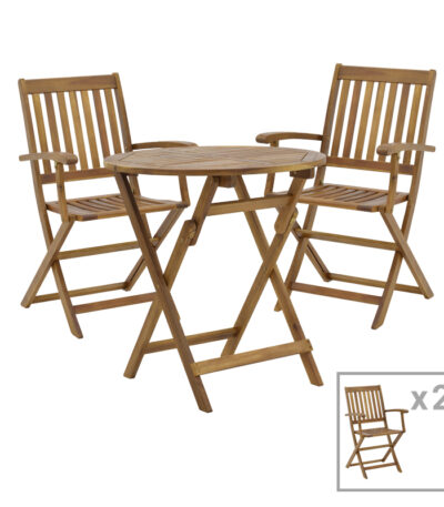 Joter-Carpuva dining table set of 3 folding natural solid acacia wood D70x74cm