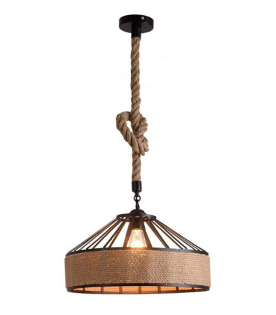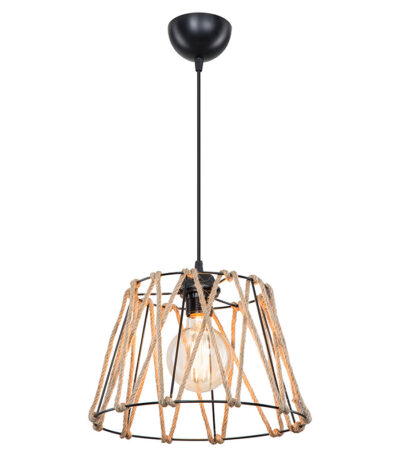Ceiling lamp Vertuko E27 rope and metal in natural-black color D10x100cm