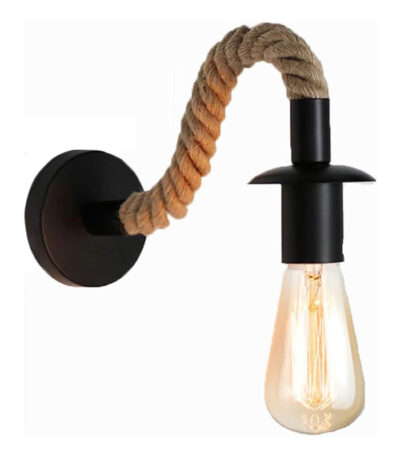 Wall light Kaniwel E27 metal and rope in black-natural color 28x10x10cm