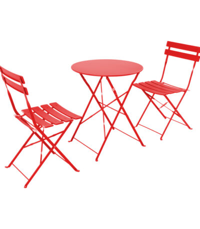 Bistro 3 pcs metal folding dining table in red shade D60x71cm