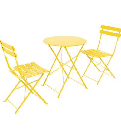 Bistro 3 pcs metal folding dining table in yellow shade D60x71cm