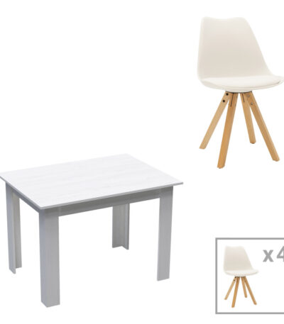 Dining table Manka-Caron set of 5 pieces in white 110x80x77cm