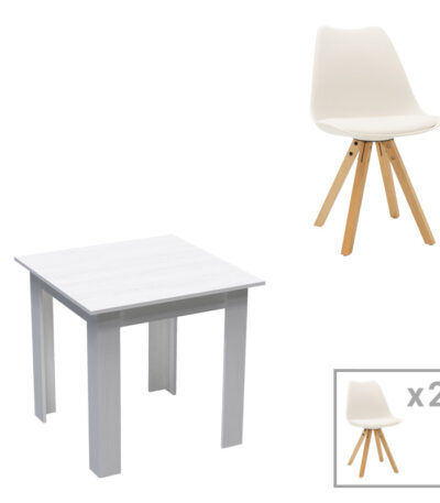 Dining table Manka I-Caron set of 3 pieces in white 80x80x77cm