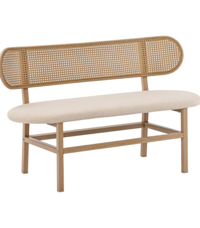 Armchair Elaiza teak wood and synthetic rope in natural-black shade with cushion 58x60x90cm