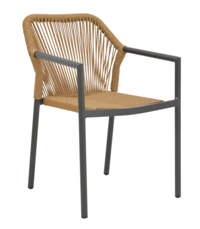 Aluminum armchair Lush stackable anthracite frame-natural rattan 56x59x80cm