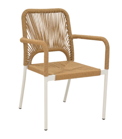Norture stackable aluminum armchair white frame-natural rattan 57x61x85cm