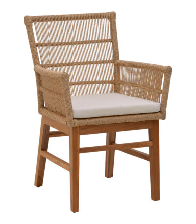 Kalie armchair teak wood and pe rope in natural-beige shade with cushion 60x61x80cm