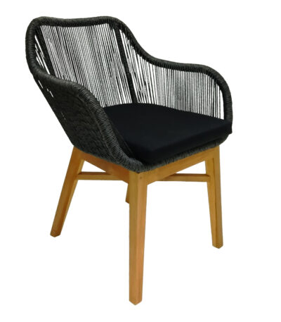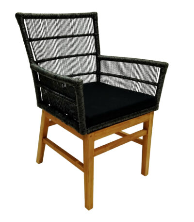 Kalie armchair teak wood and synthetic rope in natural-black shade with cushion 60x61x80cm