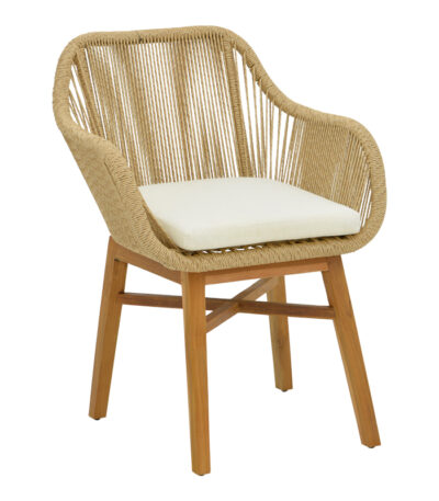 Inca armchair teak wood and pe rope in natural-beige shade with cushion 60x61x90cm