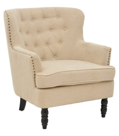 Αrmchair Keisi beige fabric-rubberwood leg in black shade 81.5x84x92.5cm