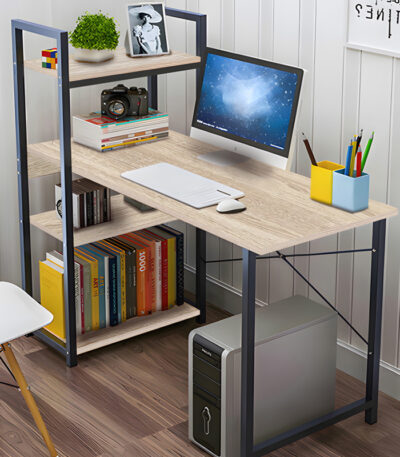 Студиска маса Бенкур со полица за книги од МДФ во природна боја со црн метал 90x40x73 см