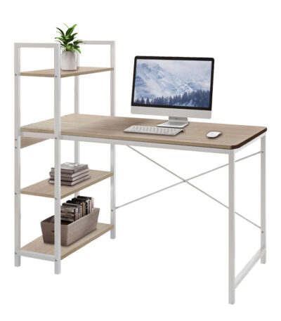 Студиска маса Бенкур со полица за книги од МДФ во дабова боја со бел метал 90x40x73 см