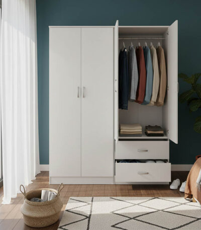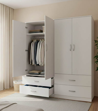 Four-leaf wardrobe with drawers Lego white 160x42x180cm