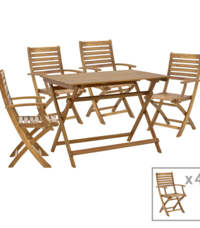 Комплет трпезариски маси Fatel-Jaybo од 5 преклопни маси од природно цврсто дрво акација 100x65x72 см