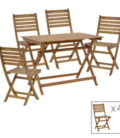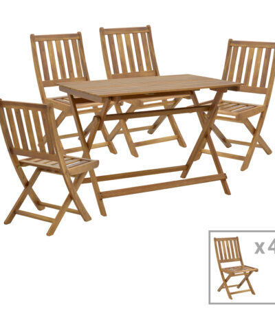 Комплет трпезариски маси Elijie-Lazio од 5 преклопни маси од природно цврсто дрво акација 50x50x70 см