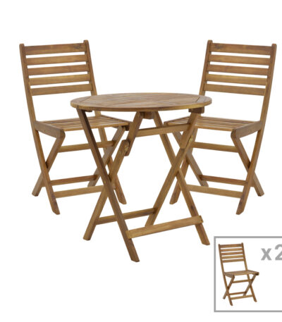 Комплет трпезариски маси Elijie-Carpuva од 3 преклопни маси од природно цврсто дрво акација D70x74 см