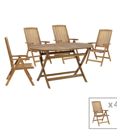 Комплет трпезариски маси Warmo-Falov од 5 природни масивни акации 130x80x72 см