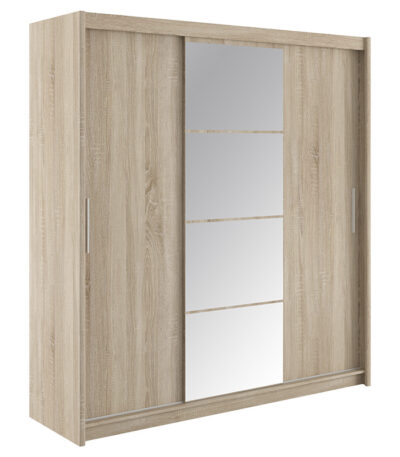 Гардеробер Елоди со 3 лизгачки врати со огледало во боја Сонома 200x61x216 см