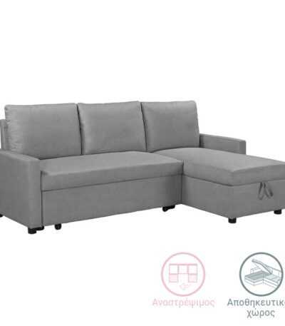 Аголна гарнитура-кревет реверзибилна ткаенина Лилијан сива 225x148x81 см