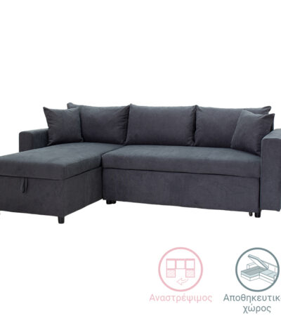 Аголна гарнитура-кревет реверзибилна ткаенина Лилијан антрацит 225x148x81 см