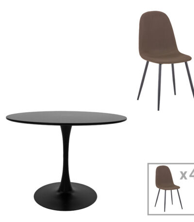 Bella-Balou dining table set of 5 pcs MDF black-brown fabric D120x73cm
