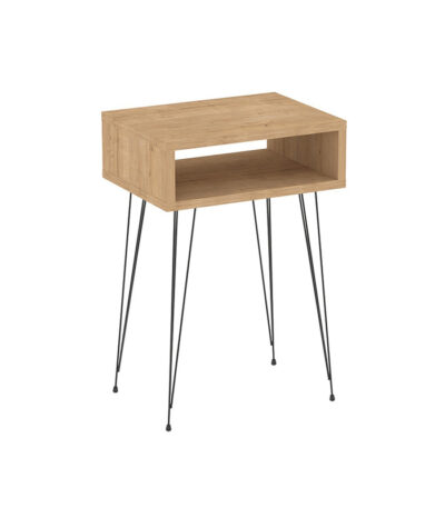 Ноќна масичка Naida во дабова нијанса – црни метални ногарки 40x30x59 см