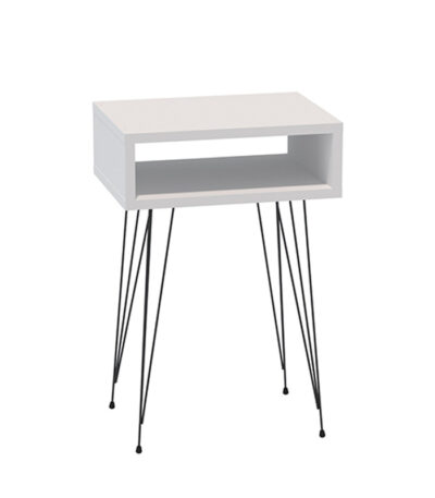 Ноќна масичка Naida во бела нијанса – црни метални ногарки 40x30x59 см