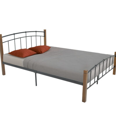 Кревет со големина „Квин“ во боја на орев, дрво Манди - црн метал 150x190 см