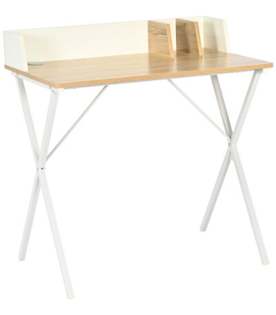 Канцелариско биро Зерван во дабова боја со бели метални ногарки 80x50x84 см