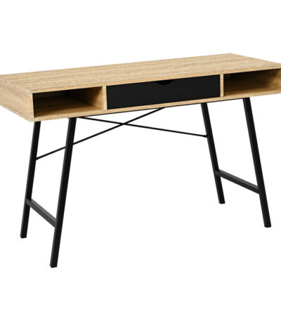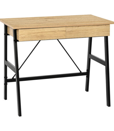 Канцелариско биро со фиоки Lione во дабова боја со црни метални ногарки 90x50x75 см