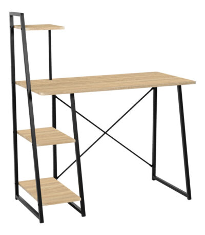 Канцелариско биро со полици Декстор во дабова боја со црни метални ногарки 102x50x117 см