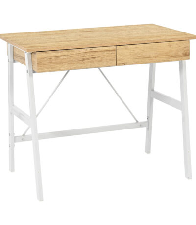 Канцелариско биро со фиоки Lione во дабова боја со бели метални ногарки 90x50x75 см