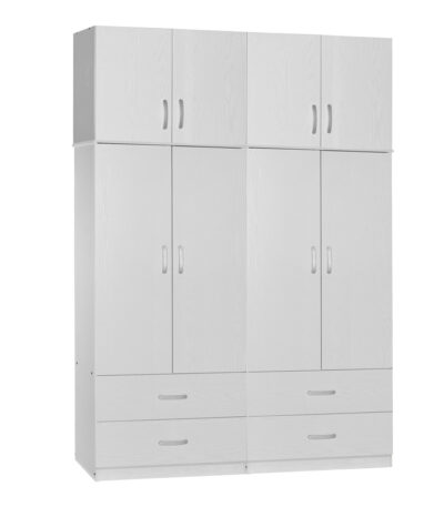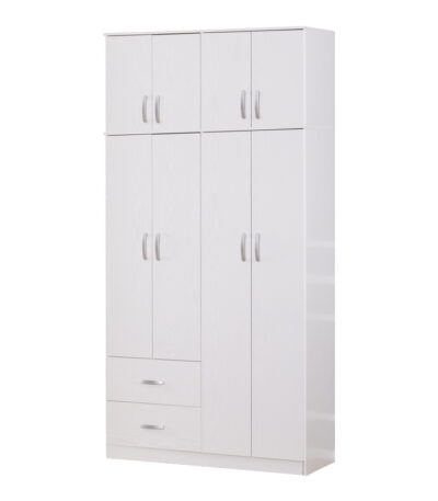 Четирикрилен гардеробер со поткровје Zelia со 2 фиоки во бела боја 120x42x240 см