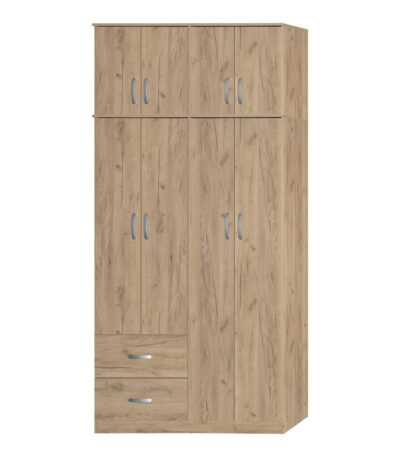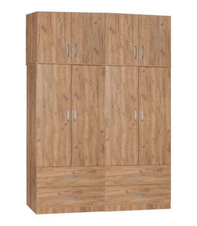 Четирикрилен гардеробер со поткровје Zelia со 2 фиоки во даб 120x42x240 см