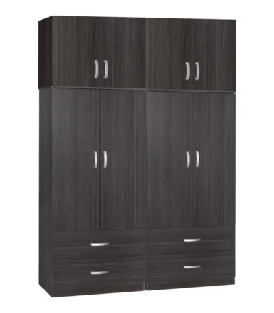 Четирикрилен гардеробер со мезанин Zelia C со 4 фиоки во венге боја 158x42x240 см