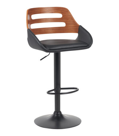 Барска столица на расклопување Fern црна пу - ореово дрво - црн метал 50×48.5×89-110.5 см