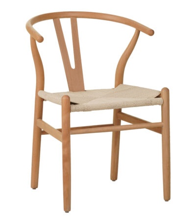 Барска столица Wishbone гумено дрво-јаже во природна нијанса 55x49x96 см