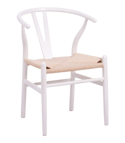 Столче со виљушкаста основа од гумено дрво и јаже во бела нијанса 53,5x57x74 см