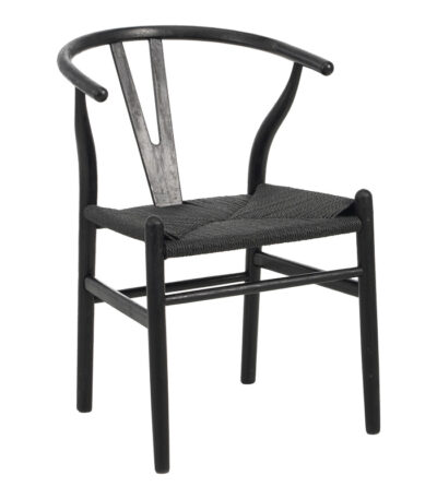 Столче со виљушкаста основа од гумено дрво и јаже во црна нијанса 53,5x57x74 см