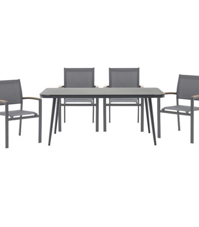 Трпезариски сет 5 парчиња Ecco-Kherson алуминиум антрацит-текстилен сива 160x90x75 см