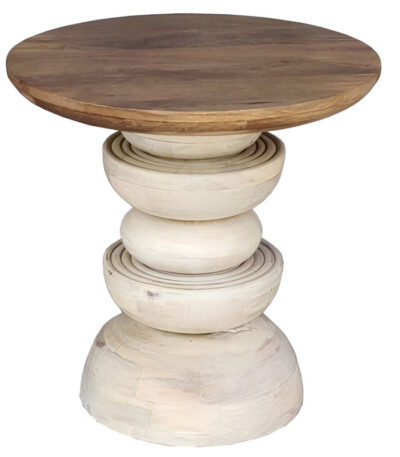 Помошна масичка Gerardo Inart од масивно акација во бела боја D55x55 см