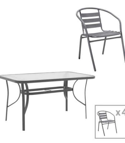 Трпезариски сет 5 парчиња Ensure-Tade метал-стакло темно сива 120x70x70 см