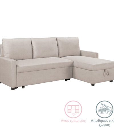 Аголна реверзибилна гарнитура-кревет Infuse со простор за складирање, беж ткаенина 203x130x88 см