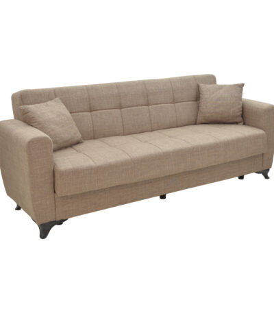 Тросед-кафеава софа на расклопување со простор за складирање Модесто, светло-кафеава ткаенина 215x85x80 см